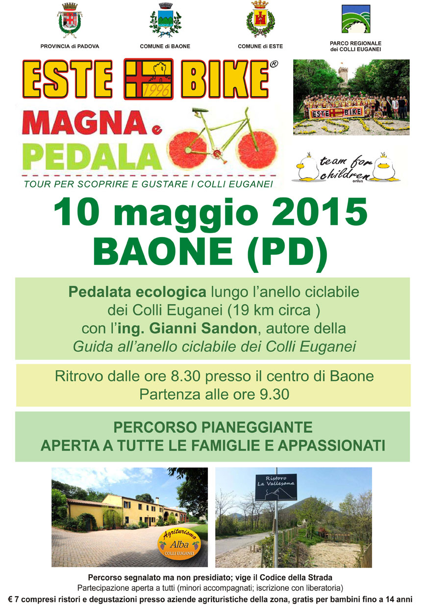 In alternativa, abbiamo pensato, con il Comune di Baone e con la disponibilità di Gianni Sandon, alle famiglie: percorso dell’anello ciclabile, da Marendole verso Este, con ritorno a Baone e sosta finale al Ristoro Vallesana del socio Magarotto!