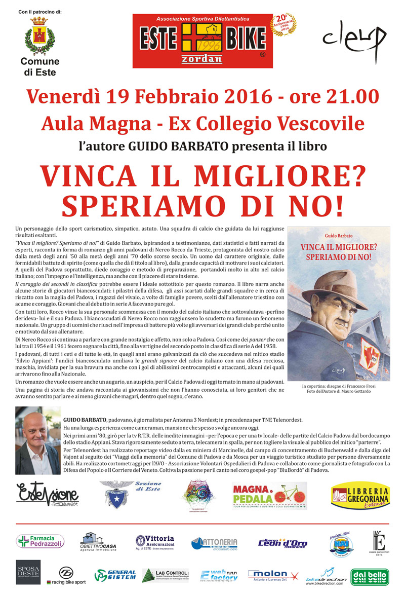 “Vinca il migliore? Speriamo di no!” di Guido Barbato, ispirandosi a testimonianze, dati statistici e fatti narrati da esperti, racconta in forma di romanzo gli anni padovani di Nereo Rocco da Trieste, protagonista del nostro calcio dalla metà degli anni ’50 alla metà degli anni ’70 dello scorso secolo. Un uomo dal carattere originale, dalle formidabili battute di spirito (come quella che dà il titolo al libro), dalla grande capacità di motivare i suoi calciatori. A quelli del Padova soprattutto, diede coraggio e metodo di preparazione, portandoli molto in alto nel calcio italiano; con l’impegno e l’intelligenza, ma anche con il piacere di stare insieme.